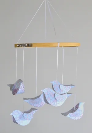 This sweet mobile is perfect for a nursery, a kid's room, or hanging near a sunny window anywhere in your home! Learn this unique papercrafting technique to make adorable 3D paper birds. Each student in the workshop receives all the materials to make a complete mobile with 6 birds. $35 per person.